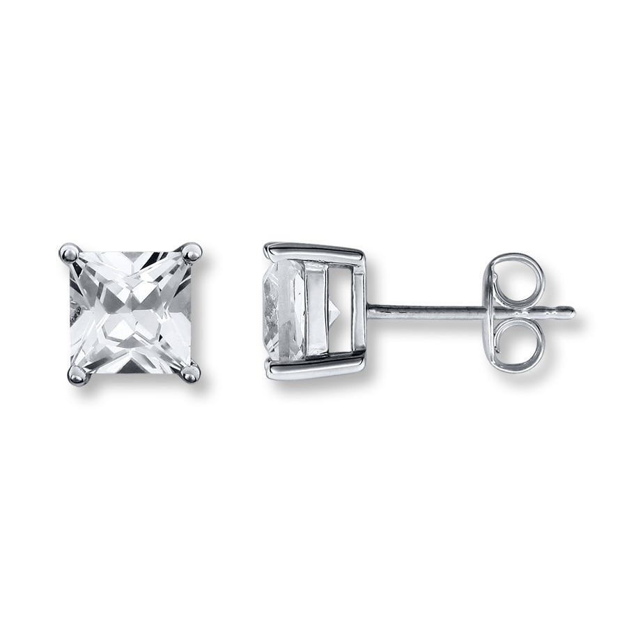 Classic style abounds in these square-cut,white sapphire earrings. Crafted in sterling silver, the earrings are fastened with friction backs.